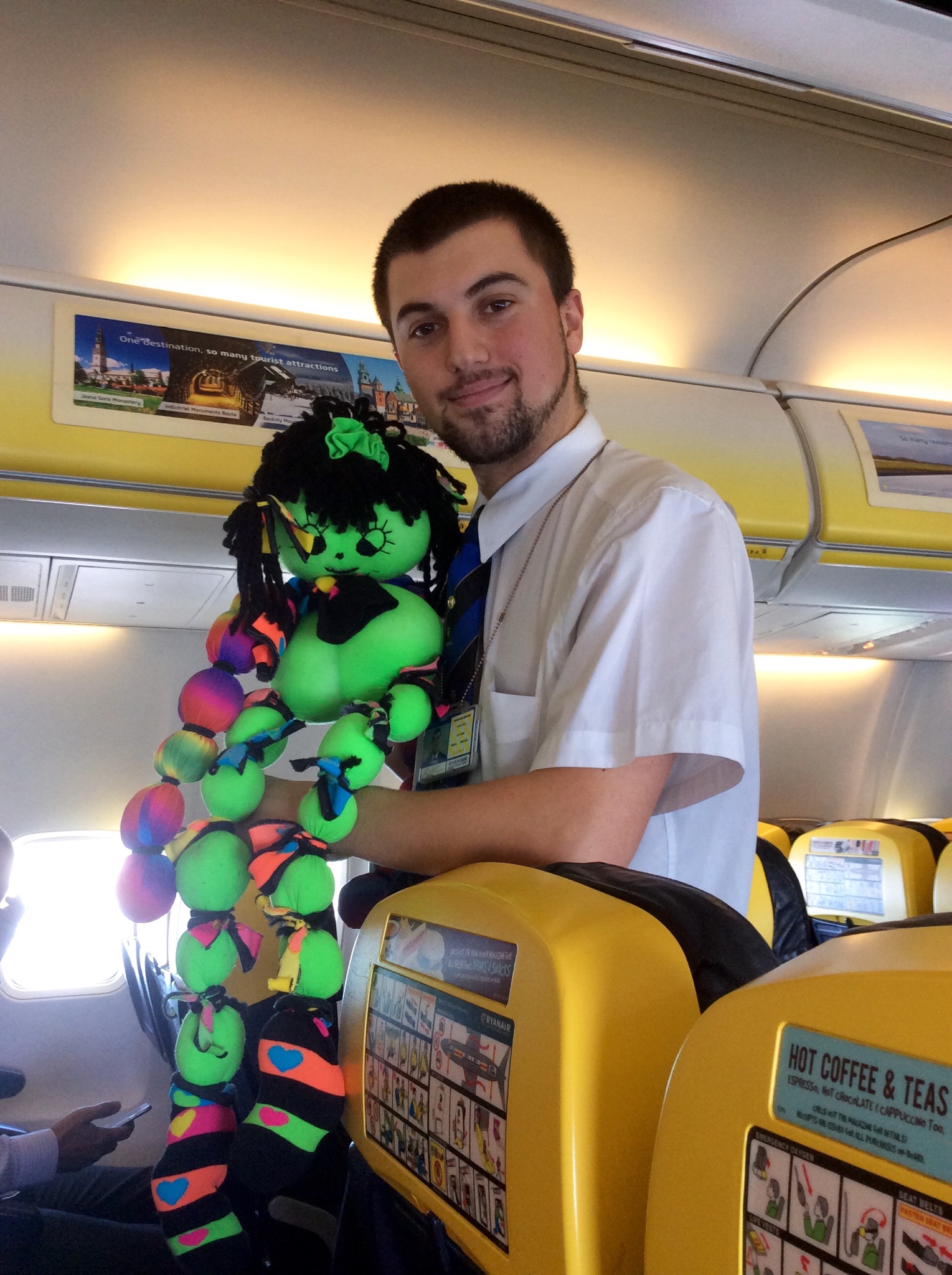 Then it her turn to leave the plane and climb down the steps. She says Thankyou to the kind steward and stewardess. It has been a lovely trip. She wants to do it all over again!