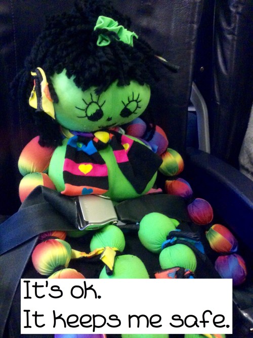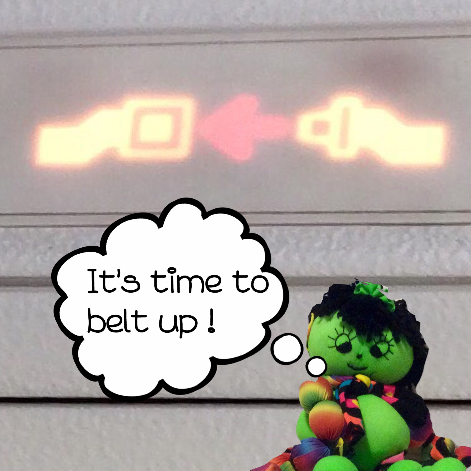 Georgie doesn't like the safety belt very much but she knows she must wear it when the sign is lit.