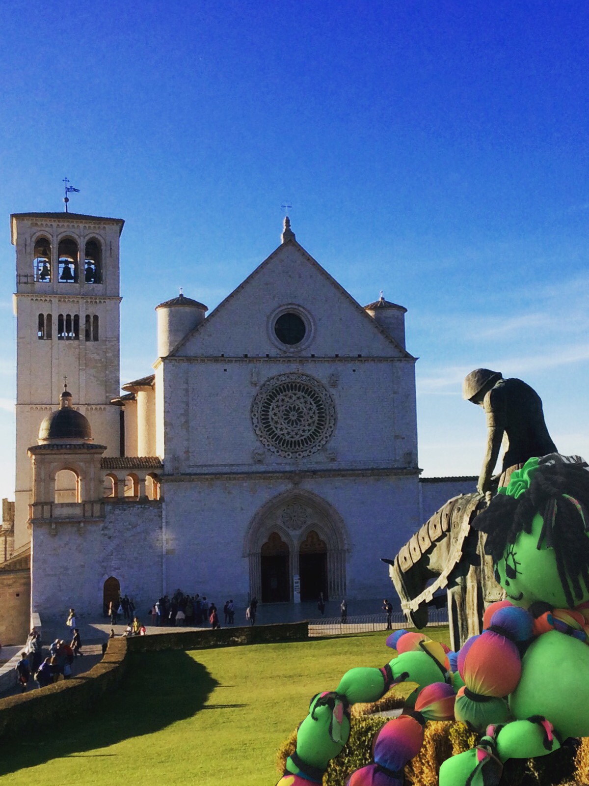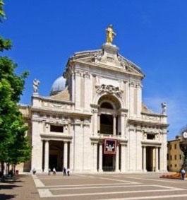 They stopped first at the base of the hill to visit he magnificent church of Santa Maria degli Angeli.