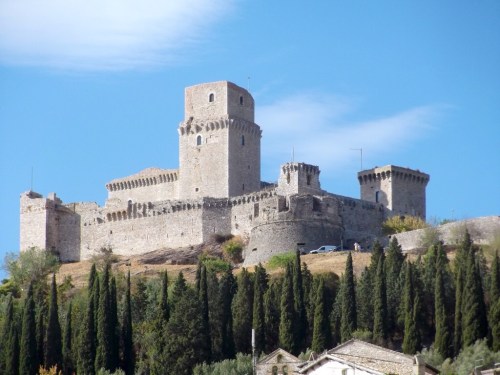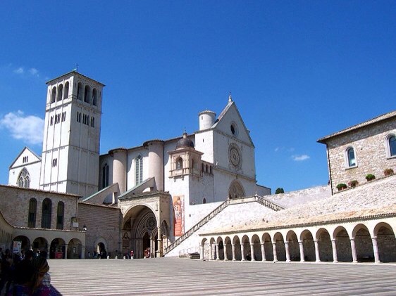 On leaving Santa Maria degli Angeli they drove up the hill to the main town of Assisi and walked past the Church of Santa Chiara.