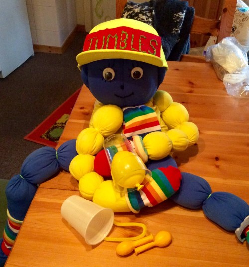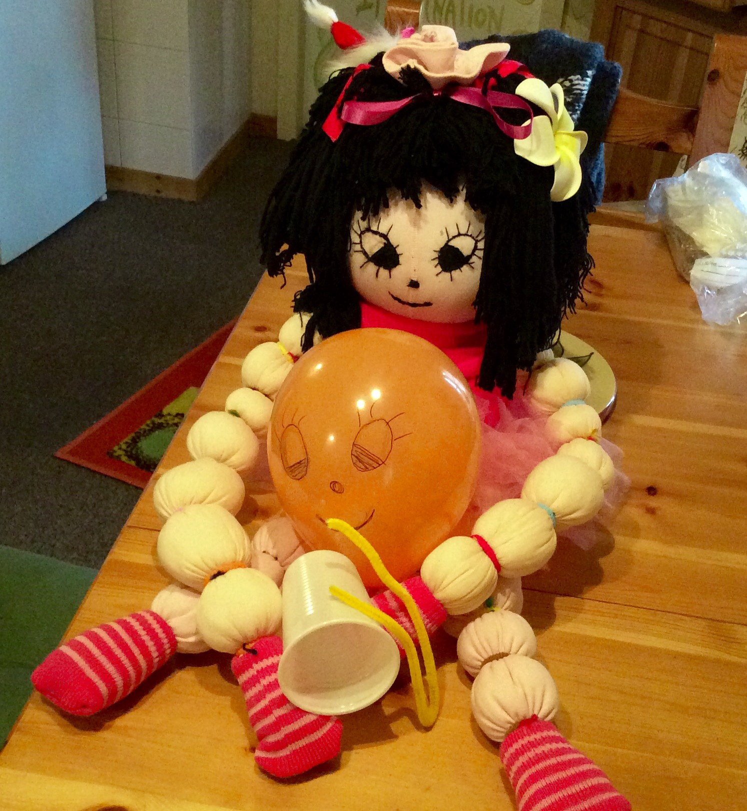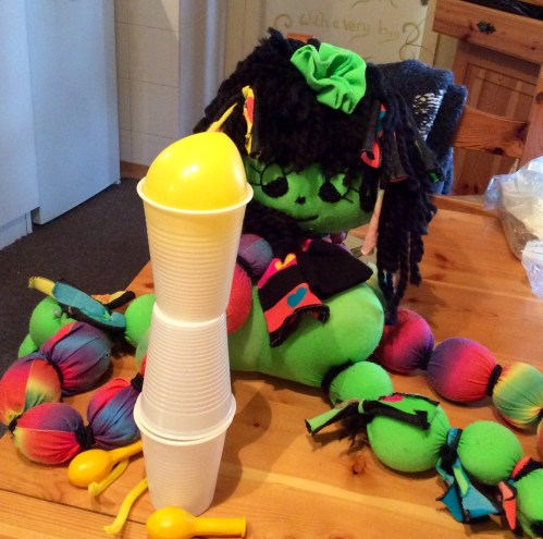 The challenge was to make something using just some plastic cups, balloons, pipe cleaners and straws.