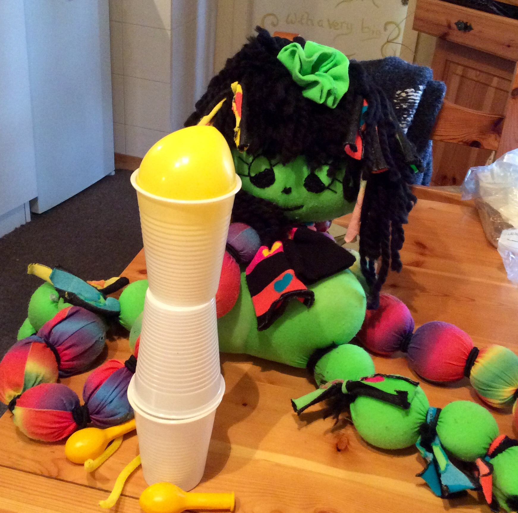 Jumbles don’t like throwing things away if they can use them again. Look what Georgie is making with her egg tray .