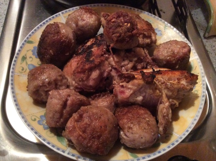 First skin the sausage and roll into balls using four . You should get two/ three good sized balls from each.