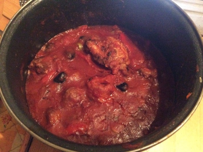 Stir well and then turn down heat and cook with lid on very gently for an hour. ( or put in the slow cooker or casserole it in the oven).
