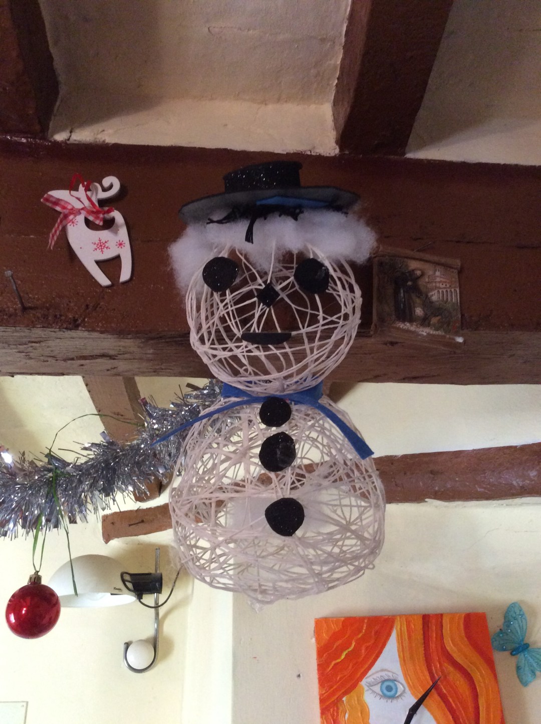All you require is a couple of balloons, some string and white glue plus scraps for the hat, scarf , buttons and eyes.