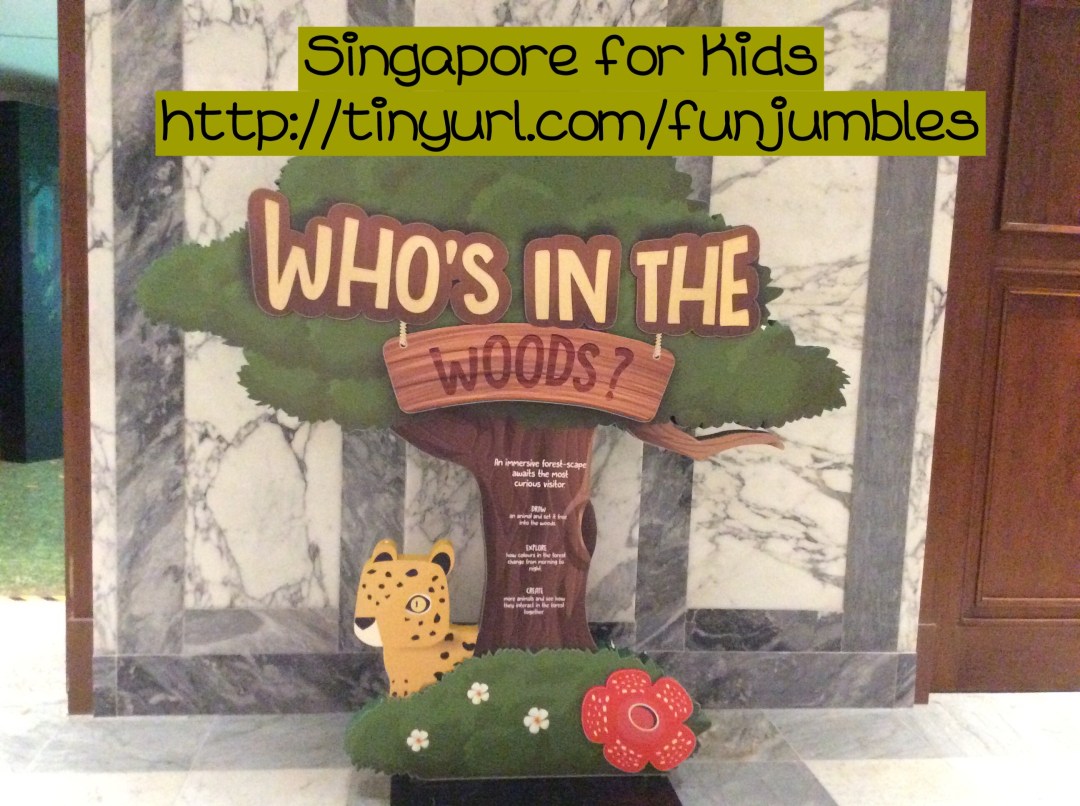 Yesterday following a delicious meal in the exquisite ‘National Kitchen’ restaurant in the Singapore National Gallery we stumbled on a really fun activity area called ‘Who’s in the Wood’. I’m not sure who enjoyed it most. Our two year old granddaughter or the adults in the party!