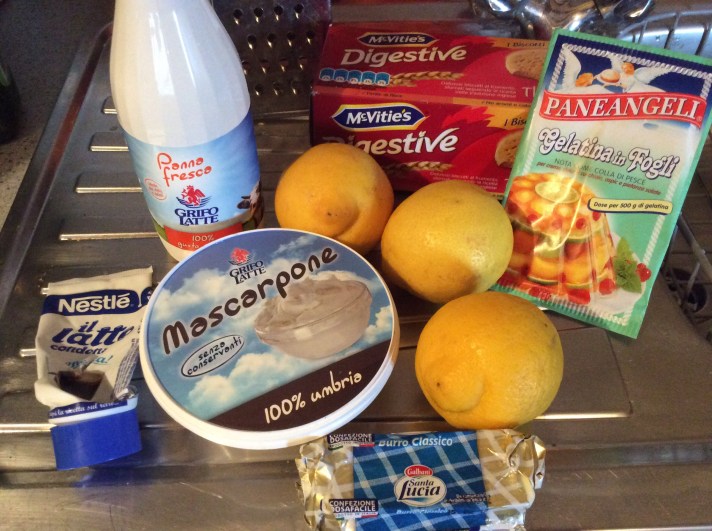Biscuits. I used an Italian biscuit. In England. Definitely not Digestive Biscuits because they are too rich. Rich Tea are too plain. Maybe ‘Hob nobs’ or similar would work.