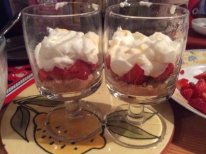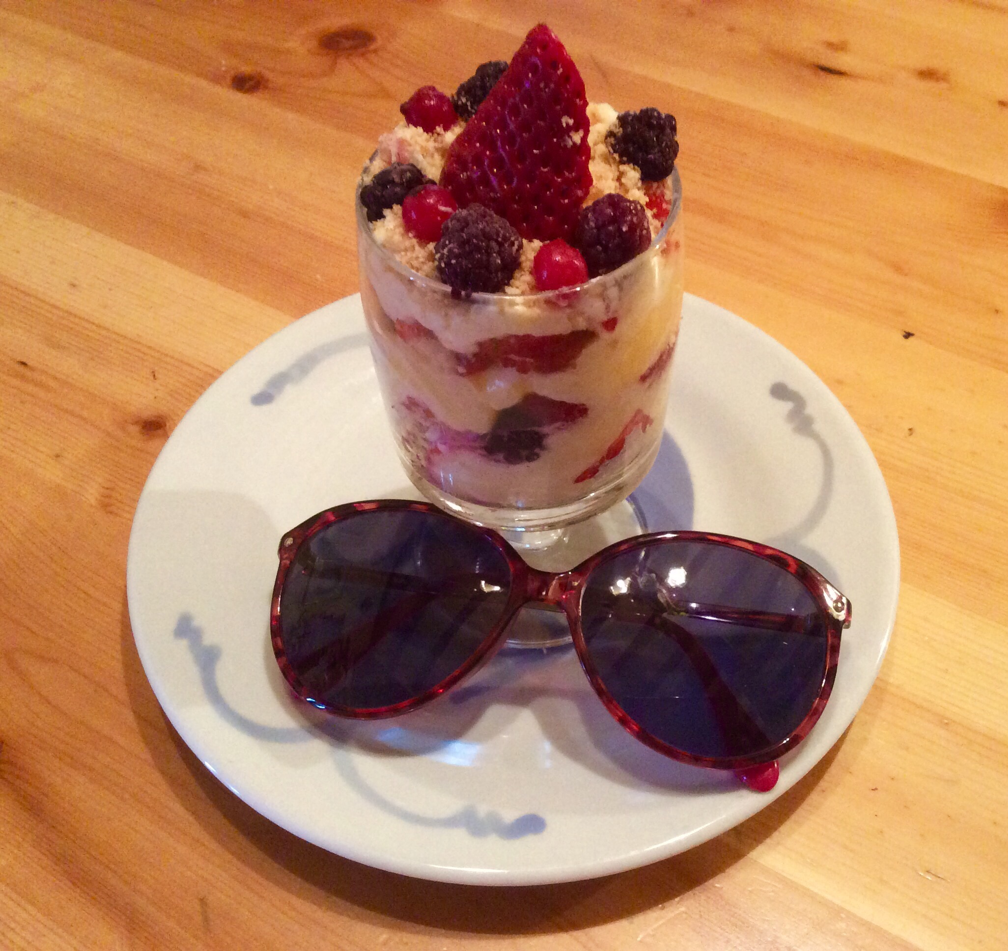 If there’s an ‘Eton Mess’ (Strawberries, whipped cream and broken meringue) then I don’t see why we can’t have a ‘Jumble House Mess’! Actually I had intended to make Eton Mess but then didn’t have any meringue so concocted this instead!