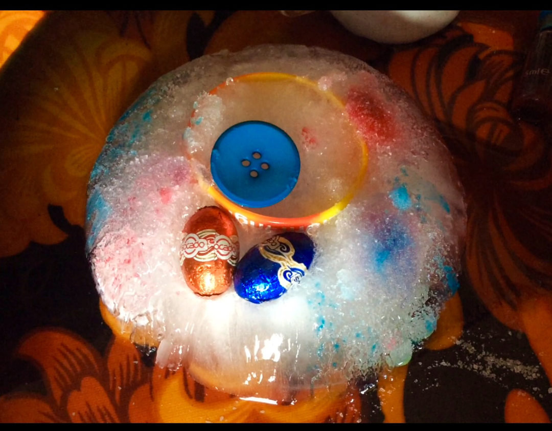 Of course as soon as small children spot the objects they will want to get them out. Especially the chocolate eggs! But it’s surprising how long ice takes to melt and young children get bored very quickly!